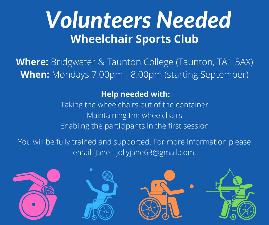 Somerset Wheelchair Sports Club are looking for a volunteer to take over the delivery of our weekly wheelchair sports session on a Monday evening.